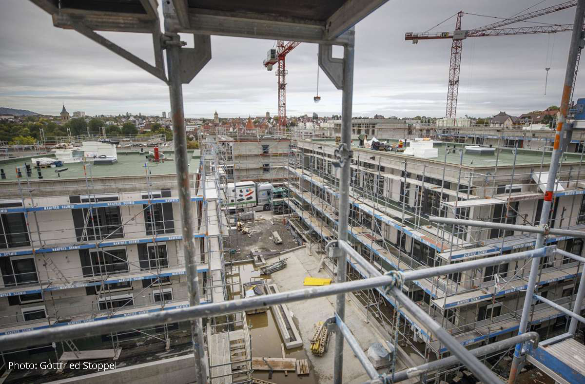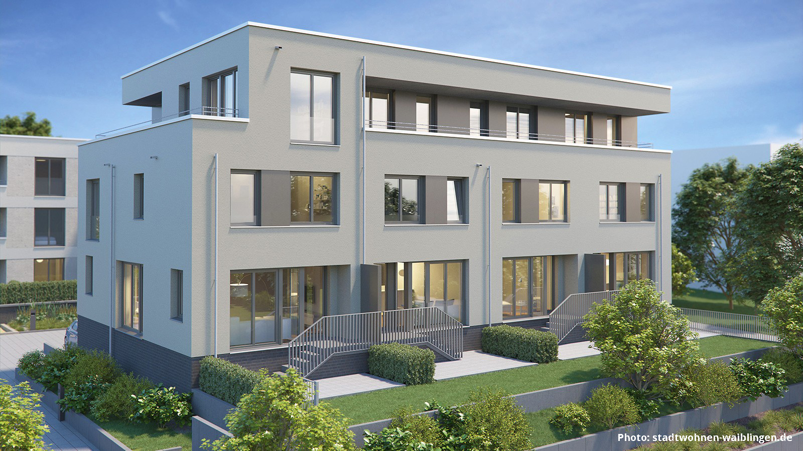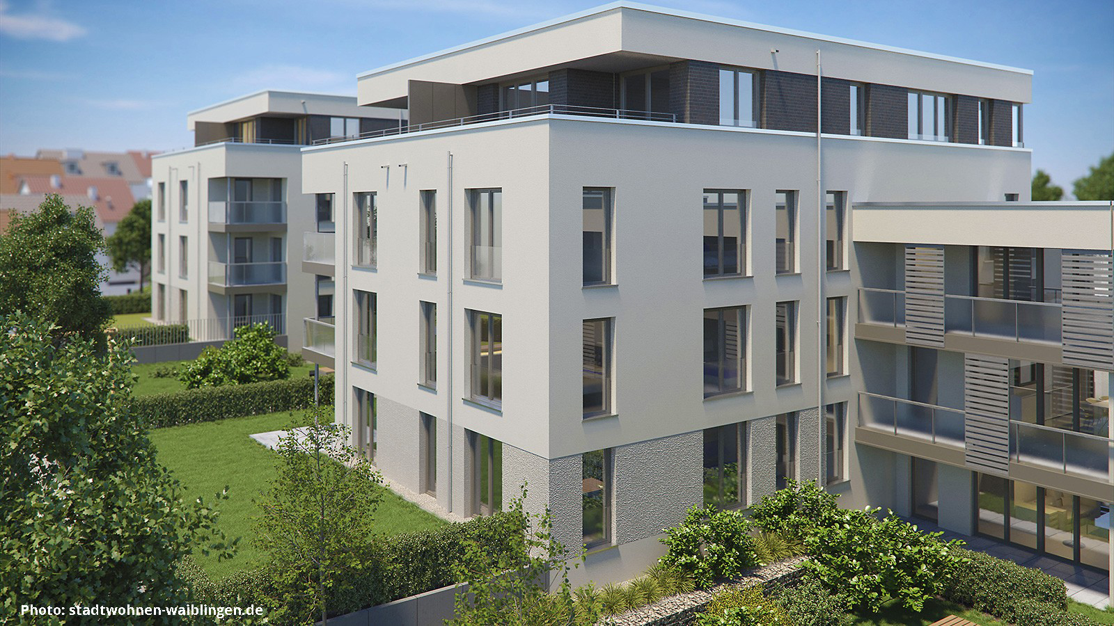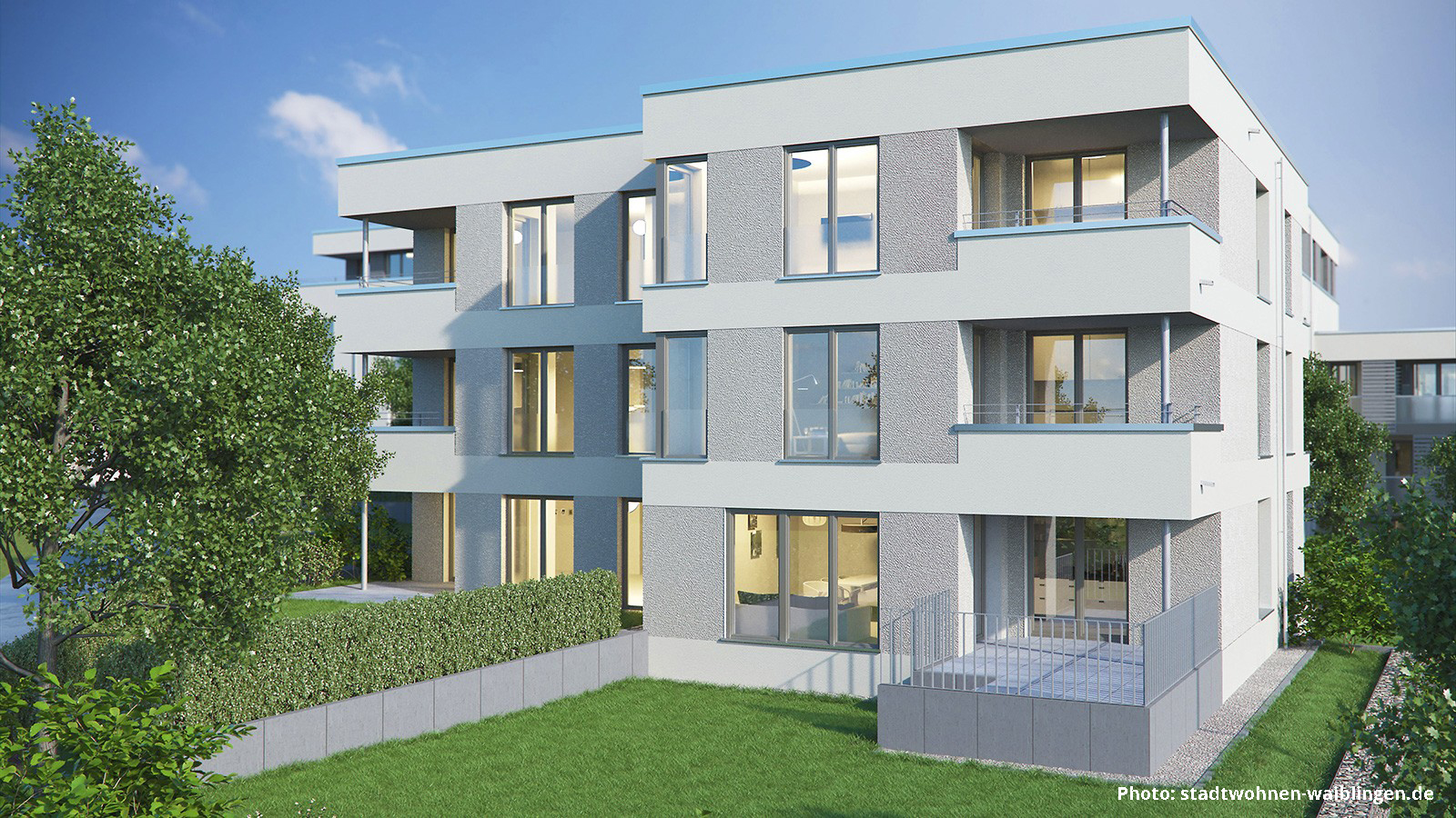 Neubau einer Wohnbebauung in Waiblingen, bestehend aus 38 Eigentumswohnungen, 46 Miet-wohnungen und Kita mit gemeinsamer Tiefgarage, ca. 15.000 qm BGF. Die Gebäude (Haus 1 - Haus 8) umfassen 1 gemeinsame Tiefgarage, 1 Erdgeschoss und 2 Ober-geschosse. Haus 1 - Haus 3 haben zusätzlich jeweils ein Dachgeschoss.