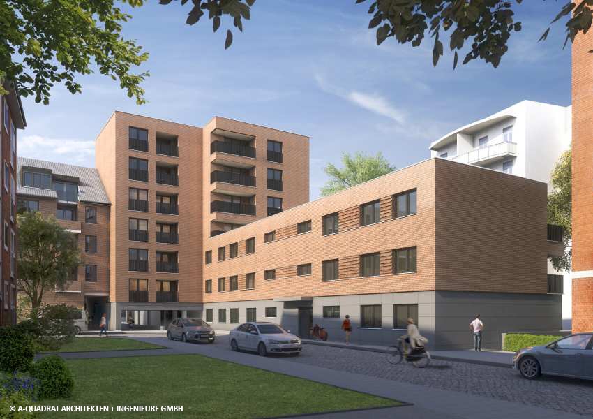 Neubau eines mehrgeschossigen Wohngebäudekomplexes in Hamburg-Altona. Das Wohngebäude besteht aus 3 Baukörpern: einem 8-Geschossigen (E0 bis E7) nahezu quadratischen Baukörper (~18x16m), einem 7-Geschossigen (E0 bis E6) nahezu rechteckigen Baukörper(~13x19m) und einem langgestreckten 3-Geschossigen (E0 bis E2) nahezu rechteckigen Baukörper(~28x10m). Unterhalb der Baukörper ist größtenteils ein Untergeschoss angeordnet. Gesamte Objekt umfasst ca. 5.100 qm Bruttogeschossfläche.
